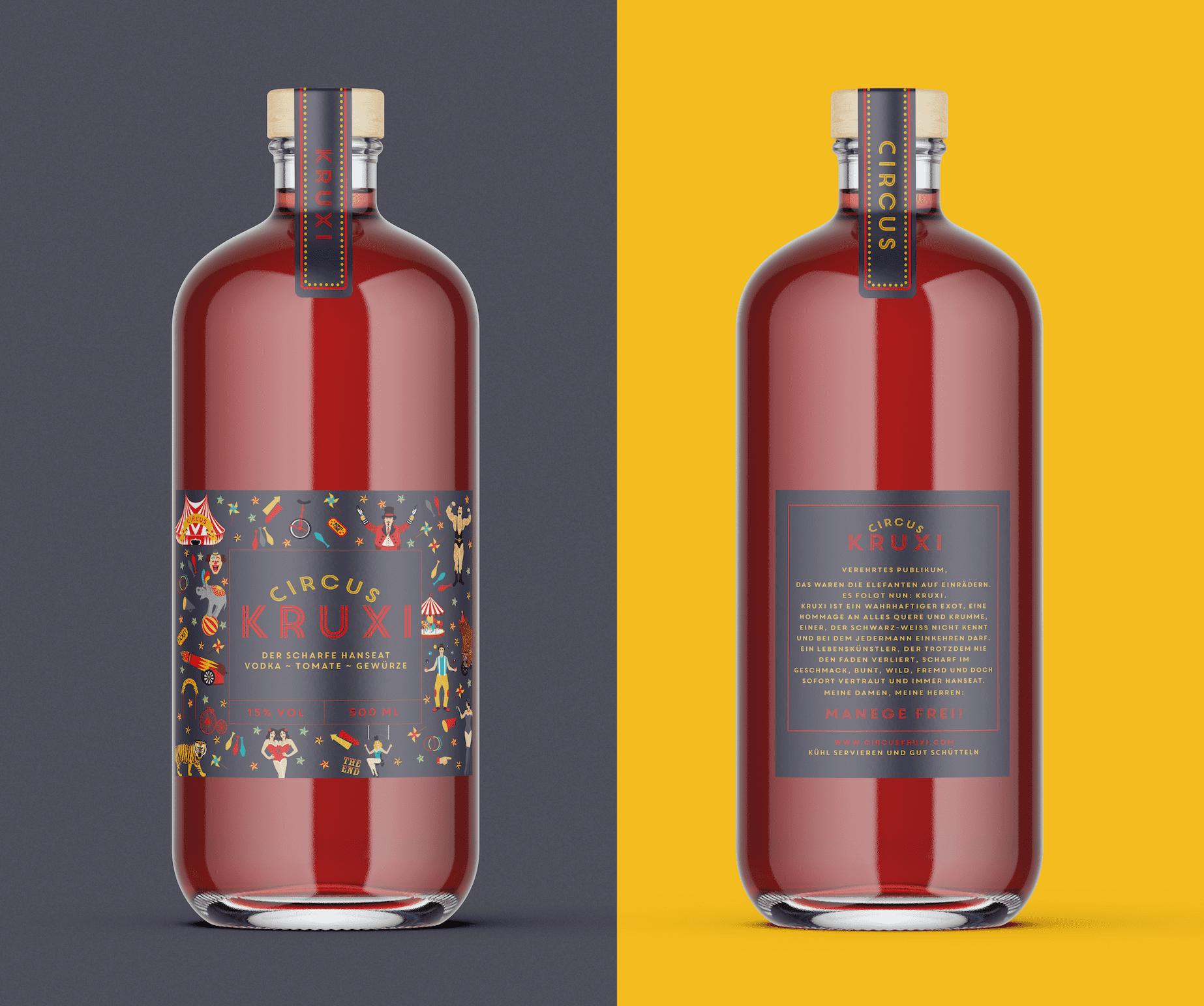 Step right up and behold the vibrant new Logo and Etiquette design for Kruxi's Mexicana - the ultimate Nightlife drink from Hamburg! Inspired by the thrill of the circus, our design is bursting with color and energy, perfectly capturing the bold flavors of this signature cocktail.
